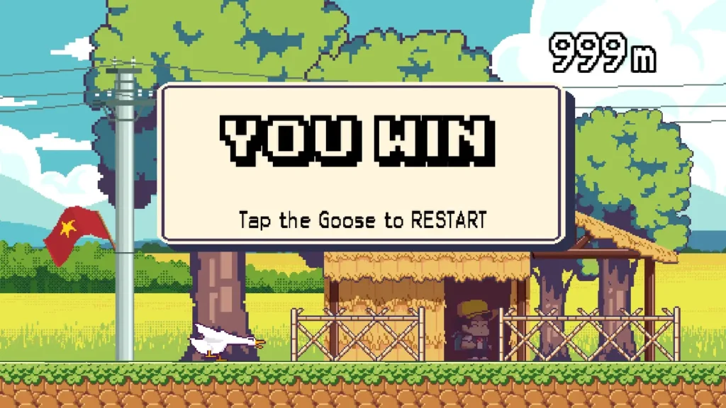Không cần kỹ xảo 3D hiện đại hay gameplay nhiều tầng phức tạp, Goosing Out vẫn trở thành điểm nhấn thú vị trong cộng đồng game thủ nhờ cách lựa chọn đề tài độc đáo, tinh thần sáng tạo rất Việt và phong cách đồ họa pixel art đầy duyên dáng.