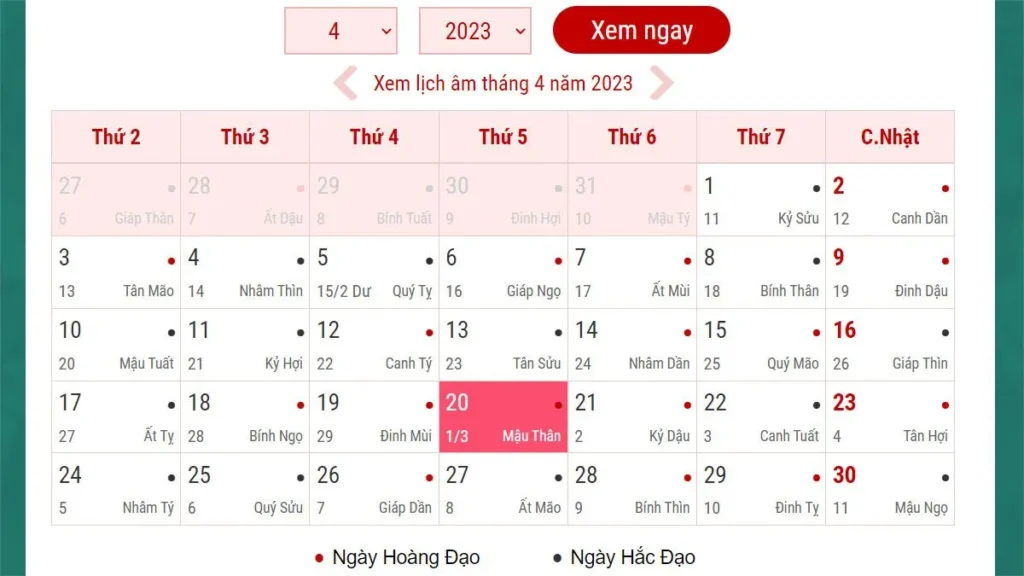 • 24/3/2023 — Hoàng Đạo, tốt cho cưới hỏi, lễ tân nhỏ.